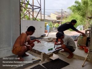 TANGERANG,TangerangJasa.com — Mushola Al Mubarak yang berada di kawasan GOR Balai Rakyat terus mengalami pembenahan. Warga bersama pengelola GOR secara gotong royong melakukan renovasi demi meningkatkan kenyamanan jamaah dan para pengguna fasilitas olahraga.
